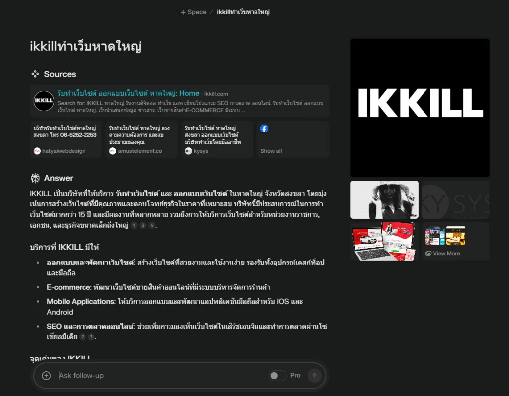 ผลการค้นหาด้วย AI จาก perplexity.ai